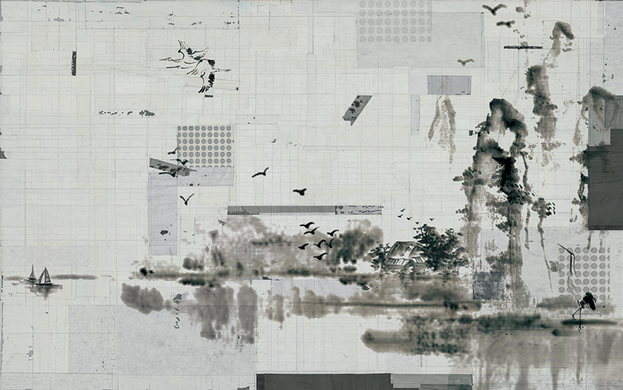 The design was inspired by ancient Chinese impressional and expressionist paintings. By using the traditional aesthetics in the mood to explain the rapids waterfalls, cloud whirlpool and lotus emerge from behind the silver misty dawn.